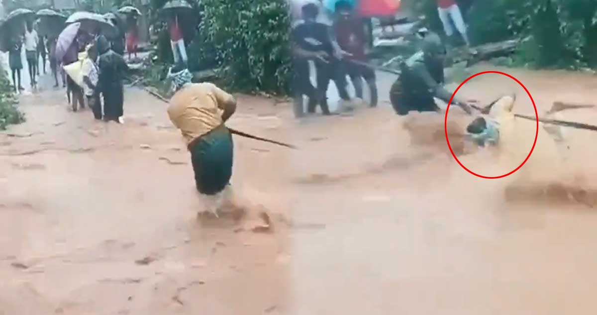 వరద ఉధృతంగా ప్రవహిస్తుండటంతో తాడు సహాయంతో ఓ వ్యక్తి , స్థానికుల సాయంతో కాలువ దాటేందకు ప్రయత్నించాడు. అయితే.. వరద ఉధృతికి అదుపతప్పి కిందపడిపోవడంతో వరదలో కొట్టుకుపోయాడు.. అయితే, పక్కనే ఉన్న చెట్ల పొదల్లో ఇరుక్కోగా, స్థానికులు అతడిని రక్షించారు. దీంతో తృటిలో ప్రాణాపాయం నుంచి తప్పించుకున్నాడు. ఈ ఘటనకు సంబంధించిన వీడియో సోషల్ మీడియాలో వైరల్ అవుతోంది.