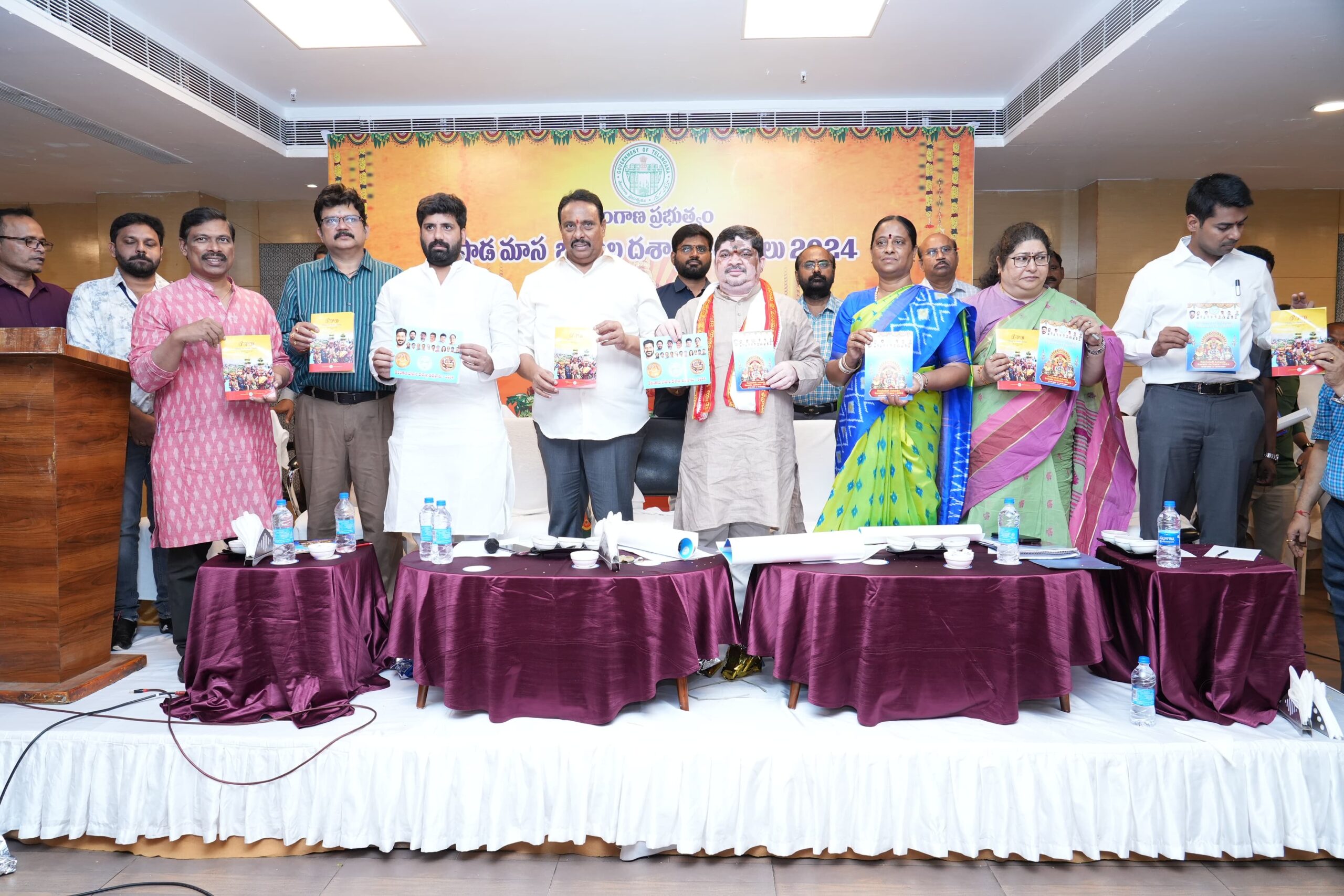 పల్లవి, హైదరాబాద్: రేపటి నుండి గోల్కొండ బోనాలతో ఆషాఢ మాస బోనాల ఉత్సవాలు ప్రారంభం అవుతాయని మంత్రి పొన్నం ప్రభాకర్ అన్నారు. ఆషాఢ మాస బోనాల ఉత్సవాల కోసం రూ. 20 కోట్లు ప్రభుత్వం కేటాయించింది. శనివారం బేగంపేట హోటల్ హరితా టూరిజం ప్లాజా లో ఆషాఢ మాసం బోనాల దశాబ్ద ఉత్సవాలు -2024కి సంబంధించిన దేవాలయాల కమిటీలకు చెక్కుల పంపిణీ కార్యక్రమం జరిగింది. ఈ కార్యక్రమానికి అతిథిగా హాజరైన మంత్రి కొండా సురేఖ, హైదరాబాద్ ఇన్చార్జి మంత్రి పొన్నం ప్రభాకర్ పాల్గొన్నారు. బోనాల ఉత్సవ క్యాలెండర్ (కాఫీ టేబుల్ బుక్), ఈవెంట్ క్యాలెండర్, బోనాల పండుగపై మామిడి హరికృష్ణ రాసిన పుస్తకం, పాటను వారు ఆవిష్కరించారు. ఈ సందర్భంగా మంత్రి పొన్నం ప్రభాకర్ మాట్లాడుతూ.. తెలంగాణ ఆషాఢ మాస దశాబ్ది బోనాల ఉత్సవాలు ఘనంగా జరపడానికి అన్ని ఏర్పాట్లు పూర్తి చేస్తున్నామన్నారు.